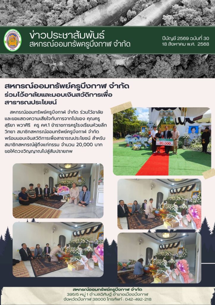 การให้ทุนการศึกษาบุตรสมาชิกสหกรณ์ออมทรัพย์ครูบึงกาฬ จำกัด ประจำปีบัญชี 2569