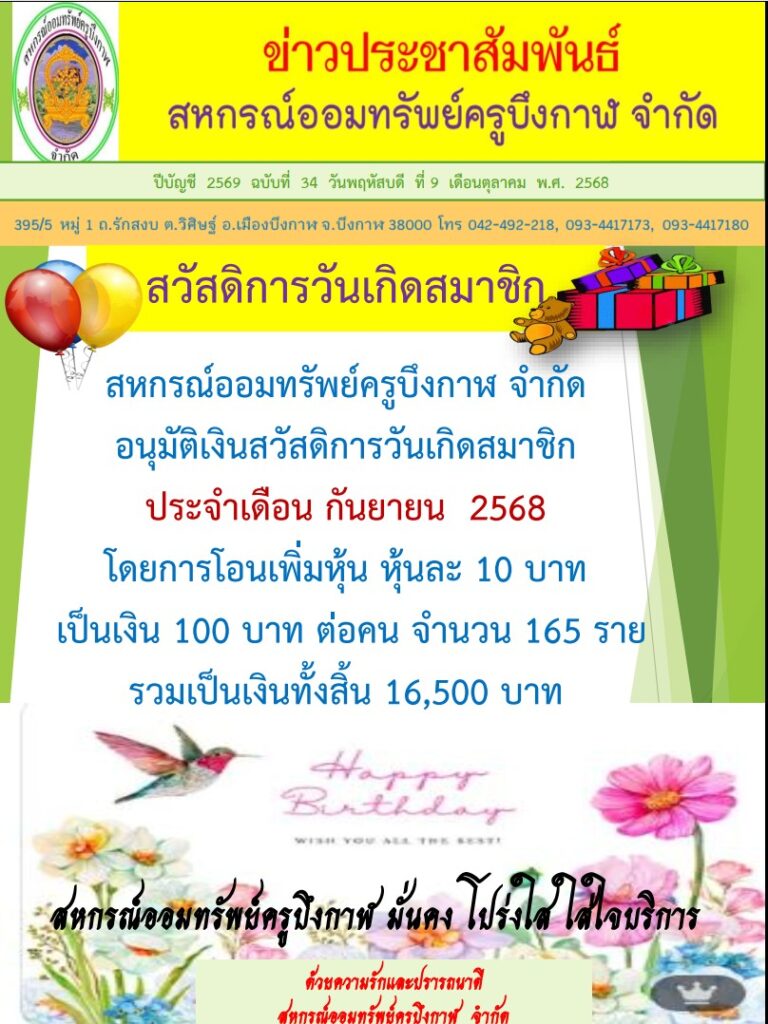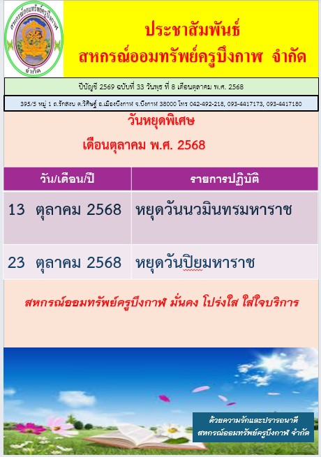 ประกาศผลการประกวดคำขวัญสกรณ์ออมทรัพย์ครูบึงกาฬ จำกัด
