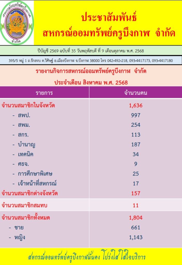 ประกาศรายชื่อและหมายเลขผู้สมัครเลือกตั้งคณะกรรมการดำเนินงานฯ ประจำปีบัญชี 2568