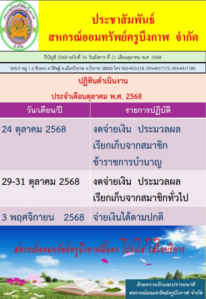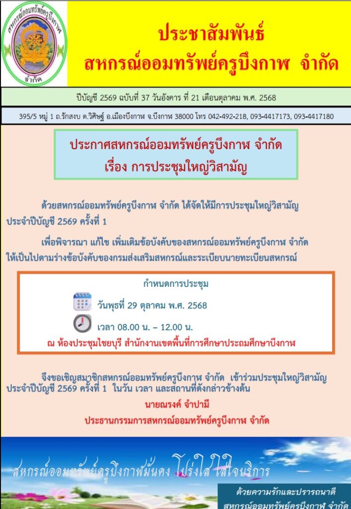 การเลือกตั้งประธานกรรมการ และกรรมการดำเนินการสหกรณ์ออมทรัพย์ครูบึงกาฬ จำกัด ประจำปีบัญชี 2569