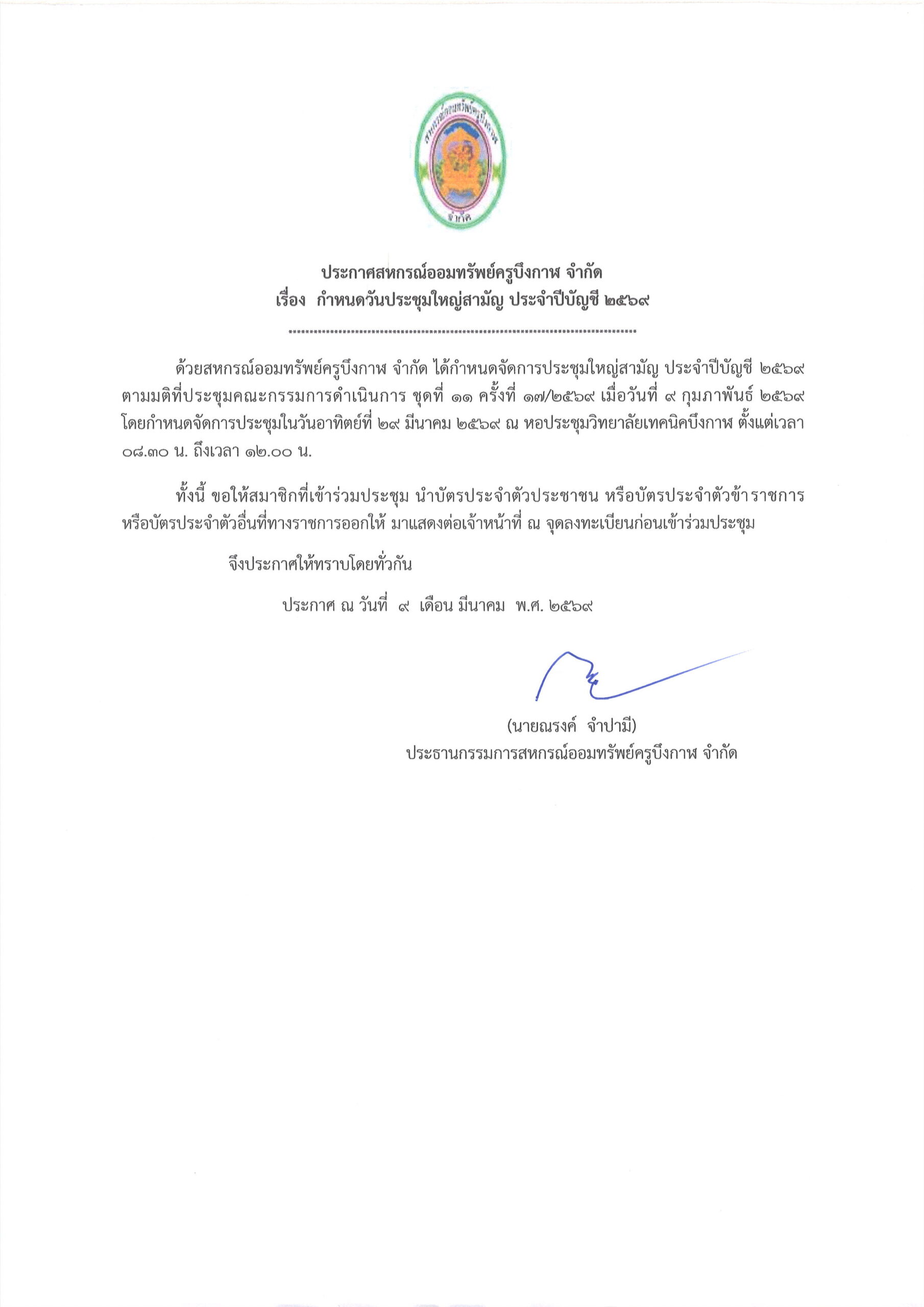 ข่าวประชาสัมพันธ์ ประกาศรายชื่อและหมายเลขสมาชิกผู้สมัครเข้ารับการเลือกตั้งคณะกรรมการดำเนินการ ประจำปีบัญชี 25706 มีนาคม 20266 มีนาคม 2026